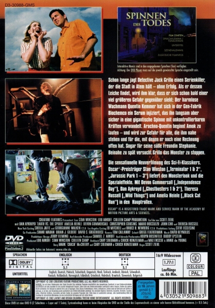 Schon lange jagt Detective Jack Grillo einen Serienkiller, der die Stadt in Atem hält - ohne Erfolg. Als er dessen Leiche findet, wird ihm klar, dass er sich schon bald einer viel größeren Gefahr gegenüber sieht: Der harmlose Wachmann Quentin Kemmer hat sich in der Gen-Fabrik Biochemco ein Serum injiziert, das ihn langsam aber sicher in eine gigantische Spinne mit unkontrollierbaren Kräften verwandelt. Arachno-Quentin beginnt Amok zu laufen - und wird zur Gefahr für alle, die ihm nahe stehen und für die, mit denen er noch eine Rechnung offen hat. Sogar für seine süße Freundin Stephanie. Beinahe zu spät versucht Grillo das Monster zu stoppen.