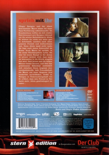Pfleger Benigno und der ältere Schriftsteller Marco sitzen bei einer Tanz-Vorführung nebeneinander. Im Krankenhaus treffen sie sich wieder. Dort kümmert sich Benigno rührend um die schöne Balletttänzerin Alicia. Er widmet ihr nicht nur seine ganze Arbeitszeit, sondern auch seine gesamte Freizeit und Aufmerksamkeit. Denn Alicia tanzt nicht mehr. Sie liegt nach einem Autounfall im Koma. Auch Marco ist verliebt, in die stolze Stierkämpferin Lydia, die aber bei einem Kampf in der Arena so schwer verletzt wird, dass auch sie bewusstlos in die Klinik eingeliefert wird. Dort lernen sich die beiden Männer kennen und über das gemeinsame Schicksal entwickelt sich zwischen ihnen langsam eine verständnisvolle, tiefe Freundschaft. Als Marco von einer längeren Auslandsreise zurückkehrt, findet er Benigno in Untersuchungshaft vor. Er erfährt, dass sein Freund in Verdacht steht, Alicia geschwängert zu haben...