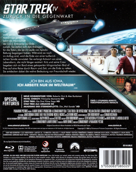 Obwohl sie als Abtrünnige gelten, kehrt die Mannschaft der U.S.S. Enterprise zur Erde zurück. Sie stellen sich den Anklagen für die Taten, die sie im Laufe von Spocks Rettung begangen haben. Während sie noch im Anflug sind, wird die Erde von einer außerirdischen Sonde verwüstet. Sie verlangt Antwort von einer Lebensform, die nicht länger existiert. Kirk und seine Crew begeben sich an Bord eines gekaperten klingonischen Bird of Prey auf eine Reise durch Raum und Zeit, um die Erde zu retten. Sie entdecken dabei die wahre Bedeutung von Freundschaft wieder.