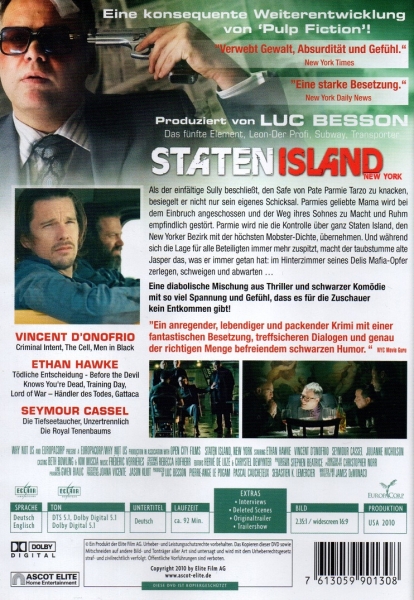 Als der einfältige Sully beschließt, den Safe von Pate Parmie Tarzo zu knacken, besiegelt er nicht nur sein eigenes Schicksal. Parmies geliebte Mama wird bei dem Einbruch angeschossen und der Weg ihres Sohnes zu Macht und Ruhm empfindlich gestört. Parmie wird nie die Kontrolle über ganz Staten Island, den New Yorker Bezirk mit der höchsten Mobster-Dichte, übernehmen. Und während sich die Lage für alle Beteiligten immer mehr zuspitzt, macht der taubstumme alte Jasper das, was er immer getan hat: im Hinterzimmer seines Delis Mafia-Opfer zerlegen, schweigen und abwarten...