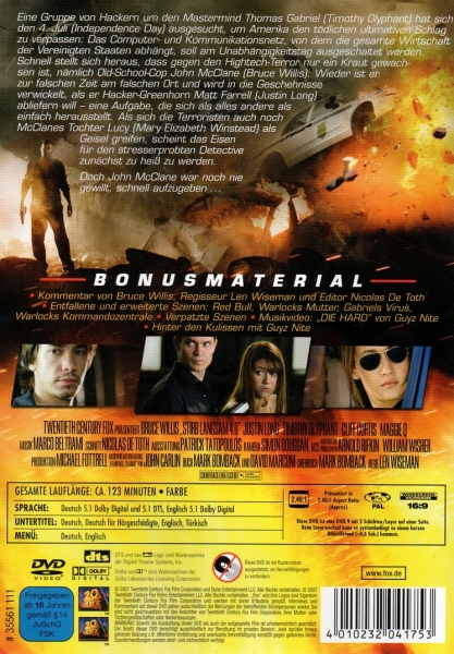 Eine Gruppe von Hackern um den Mastermind Greg Pope hat sich den 4. Juli - den Independence Day - ausgesucht, um Amerika den tödlichen ultimativen Schlag zu verpassen: Das Computer- und Kommunikationsnetz, von dem die gesamte Wirtschaft der Vereinigten Staaten abhängt, soll am Unabhängigkeitstag ausgeschaltet werden. Schnell stellt sich heraus, dass gegen den Hightech-Terror nur ein Kraut gewachsen ist, nämlich Old-School-Cop John McLane. Wieder ist er zur falschen Zeit am falschen Ort und wird in die Geschehnisse verwickelt, als er Hacker-Greenhorn Matt Foster abliefern will - eine Aufgabe, die sich als alles andere als einfach herausstellt. Als sich die Terroristen auch noch McLanes Tochter Lucy als Geisel greifen, scheint das Eisen für den stresserprobten Detective zunächst zu heiß zu werden...