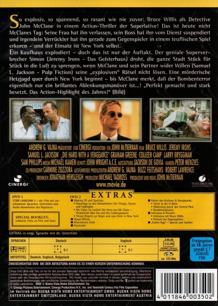 Das ist heute nicht McClanes Tag. Seine Frau hat ihn verlassen, sein Boß hat ihn vom Dienst suspendiert und irgendein Verrückter hat ihn gerade zum Gegenspieler in einem teuflischen Spiel erkoren - und der Einsatz ist New York selbst. Ein Kaufhaus ist explodiert, doch das ist nur der Auftakt. Der geniale Superverbrecher Simon droht, die ganze Stadt Stück für Stück in die Luft zu sprengen, wenn McClane und sein Partner wider Willen seine "explosiven" Rätsel nicht lösen. Eine mörderische Hetzjagd quer durch New York beginnt - bis McClane merkt, daß der Bombenterror eigentlich nur ein brillantes Ablenkungsmanöver ist...!