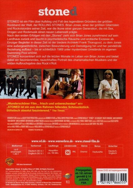 "Stoned" ist ein Film über Aufstieg und Fall des legendären Gründers des größten Rockband der Welt, der Rolling Stones. Brian Jones, einer der größten Gitarristen und Rockvisionäre seiner Zeit, war die Ikone einer ganzen Generation, die mit Sex, Drogen und Rockmusik einen neuen Lebensstil prägte. Nach den ersten Erfolgen mit den Stones zieht sich Brian Jones zunehmend auf sein Landhaus zurück und taucht in psychedelische Räusche und erotische Exzesse ab. Einziger Begleiter in dieser Zeit ist der biedere Architekt Frank Thorogood, zu dem Jones eine außergewöhnliche, zwischen Bewunderung und Demütigung hin und her pendelnde Beziehung aufbaut bis er schließlich 1969 unter mysteriösen Umstände im eigenen Swimming Pool ertrinkt. "Stoned" konzentriert sich auf die letzten Monate im Leben von Brian Jones und bietet dabei ein faszinierendes, rauschhaftes Portrait des charismatischen Musikers und der wilden Aufbruchsjahre des RocknRoll.