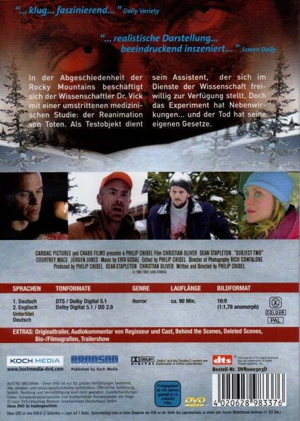 In der Abgeschiedenheit der Rocky Mountains, beschäftigt sich der Wissenschaftler Dr.Vick mit einer umstrittenen medizinischen Studie: der Reanimation von Toten. Als Testobjekt dient sein Assistent, der sich im Dienste der Wissenschaft, freiwillig zur Verfügung stellt. Doch der Tod hat seine eigenen Gesetze...