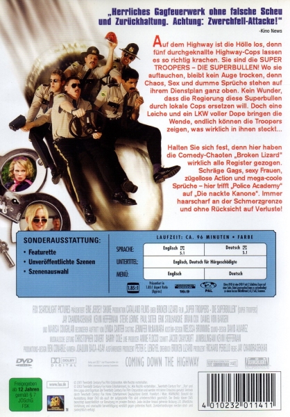 Auf dem Highway ist die Hölle los, denn fünf durchgeknallte Highway-Cops lassen es so richtig krachen. Sie sind die Super Troopers - Die Superbullen! Wo sie auftauchen, bleibt kein Auge trocken, denn Chaos, Sex und dumme Sprüche stehen auf ihrem Dienstplan ganz oben. Kein Wunder, dass die Regierung diese Superbullen durch lokale Cops ersetzen will. Doch eine Leiche und ein LKW voller Dope bringen die Wende, endlich können die Troopers zeigen, was wirklich in ihnen steckt...