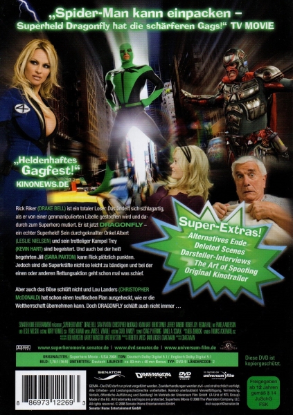 Rick Riker (DRAKE BELL) ist ein totaler Loser. Das ändert sich schlagartig, als er von einer genmanipulierten Libelle gestochen wird und dadurch zum Superhero mutiert. Er ist jetzt DRAGONFLY - ein echter Superheld! Sein durchgeknallter Onkel Albert (LESLIE NIELSEN) und sein trotteliger Kumpel Trey (KEVIN HART) sind begeistert. Und auch bei der heiß begehrten Jill (SARA PAXTON) kann Rick plötzlich punkten. Jedoch sind die Superkräfte nicht so leicht zu bändigen und bei der einen oder anderen Rettungsaktion geht schon mal was schief. Aber auch das Böse schläft nicht und Lou Landers (CHRISTOPHER MCDONALD) hat schon einen teuflischen Plan ausgeheckt, wie er die Weltherrschaft übernehmen kann. Doch DRAGONFLY schläft auch nicht immer…