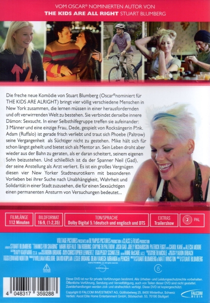 Die freche neue Komödie von Stuart Blumberg (Oscar® nominiert für THE KIDS ARE ALRIGHT) bringt vier völlig verschiedene Menschen in New York zusammen, die lernen müssen in einer herausfordernden und oft verwirrenden Welt zu bestehen. Sie verbindet derselbe innere Dämon: Sexsucht. In einer Selbsthilfegruppe treffen sie aufeinander: 3 Männer und eine einzige Frau, Dede, gespielt von Rocksängerin P!nk. Adam (Ruffalo) ist gerade frisch verliebt und traut sich Phoebe (Paltrow) seine Vergangenheit als Süchtiger nicht zu gestehen. Mike hält sich für schon längst geheilt und bietet sich als Mentor an. Sein Leben droht aber wieder aus der Bahn zu geraten, als er daran scheitert, seinem eigenen Sohn beizustehen. Und schließlich ist da der Spanner Neil (Gad), der seine Anstellung als Arzt verliert. Es ist ein großes Vergnügen diesen vier New Yorker Stadtneurotikern mit besonderen Vorlieben bei ihrer Suche nach Unabhängigkeit, Wahrheit und Solidarität in einer Stadt zuzusehen, die für einen Sexsüchtigen einen permanenten Ansturm von Versuchungen bedeutet...