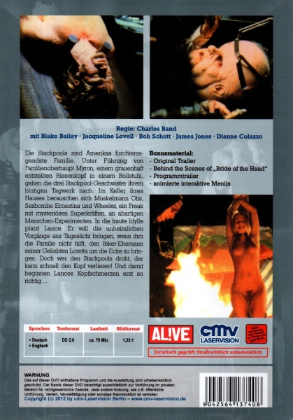 Die Stackpools sind Amerikas furchterregenste Familie. Unter Führung von Familienoberhaupt Myron, einem grauenhaft enstellten Riesenkopf in einem Rollstuhl, gehen die drei Stackpool-Geschwister ihrem blutigen Tagwerk nach. Im Keller ihres Hauses berauschen sich Muskelmann Otis, Sexbombe Ernestina und Wheeler, ein Freak mit mysteriösen Superkräften, an abartigen Menschen-Experimenten. In die traute Idylle platzt Lance. Er will die unheimlichen Vorgänge ans Tageslicht bringen, wenn ihm die Familie nicht hilft, den Biker-Ehemann seiner Geliebten Loretta um die Ecke zu bringen. Doch wer den Stackpools droht, der kann schnell den Kopf verlieren! Und damit beginnen Lances Kopfschmerzen erst so richtig...