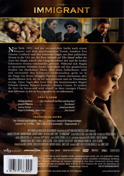 New York, 1921: Auf der verzweifelten Suche nach einem Neustart und dem amerikanischen Traum, wandern Ewa (Marion Cotillard) und ihre Schwester Magda aus ihrer polnischen Heimat in die USA aus. Bei ihrer Ankunft auf Ellis Island stellen die Ärzte bei Magda jedoch eine Lungenkrankheit fest und die beiden Schwestern werden voneinander getrennt. Während sich Magda in Quarantäne befindet, landet Ewa allein auf den gnadenlosen Straßen von Manhattan. Allein, ohne einen Zufluchtsort, Geld und verzweifelt ihre Schwester wiederzusehen, gerät sie in die Fänge von Bruno (Joaquin Phoenix), einem charmanten aber durchtriebenen Kerl, der sie bei sich aufnimmt und zur Prostitution zwingt. Eines Tages aber lernt Ewa den faszinierenden Magier Orlando (Jeremy Renner) kennen - Brunos Cousin. Er erobert ihr Herz im Sturm und wird schnell zu ihrer einzigen Chance, dem Albtraum, in den sie hineingeraten ist, zu entkommen.