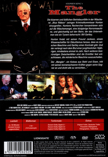Die bizarren und tödlichen Betriebsunfälle in der Wäscherei ""Blue Ribbon"" zwingen Kriminalkommissar Hunton einzugreifen. Huntons Recherchen konzentrieren sich auf die Wäschemangel, eine blutgierige Horrormaschine, und gleichzeitig auf den Mann, der das Unternehmen wie ein Tyrann beherrscht: Bill Gartley. Hunton findet mit seinem Freund Jackson, einem Wissenschaftler für Okkultismus heraus, dass es zwischen Maschine und Gartley einen Kontrakt gibt. Und der verlangt nach dem Blut einer jungfräulichen 16jährigen, mindestens einem im Jahr. Nach weiteren blutrünstigen Zwischenfällen sind die Ermittler fest entschlossen, die mörderische Maschine auszuschalten. Der ""Mangler"", ein Koloss aus Stahl und Eisen, tritt mit seinen tonnenschweren Kräften gegen seine Gegner an und droht alle zu vernichten.