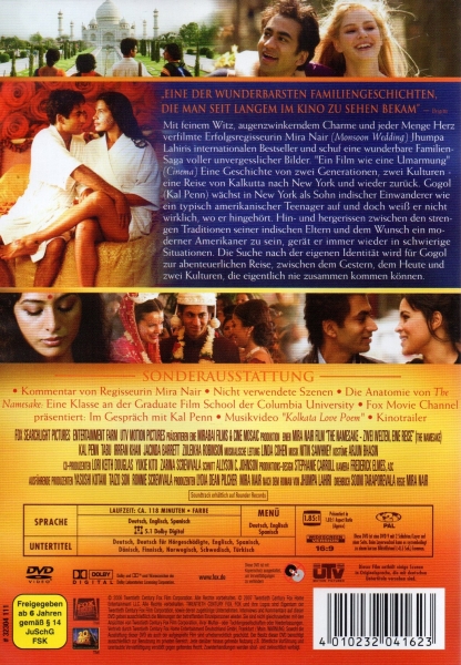 Mit feinem Witz, augenzwinkerndem Charme und jeder Menge Herz verfilmte Erfolgsregisseurin Mira Nair (Monsoon Wedding) Jhumpa Lahiris internationalen Bestseller und schuf eine wunderbare Familien-Saga voller unvergesslicher Bilder. "Ein Film wie eine Umarmung" (Cinema) Eine Geschichte von zwei Generationen, zwei Kulturen - eine Reise von Kalkutta nach New York und wieder zurück. Gogol (Kal Penn) wächst in New York als Sohn indischer Einwanderer wie ein typisch amerikanischer Teenager auf und doch weiß er nicht wirklich, wo er hingehört. Hin- und hergerissen zwischen den strengen Traditionen seiner indischen Eltern und dem Wunsch ein moderner Amerikaner zu sein, gerät er immer wieder in schwierige Situationen. Die Suche nach der eigenen Identität wird für Gogol zur abenteuerlichen Reise, zwischen dem Gestern, dem Heute und zwei Kulturen, die eigentlich nie zusammen kommen können.