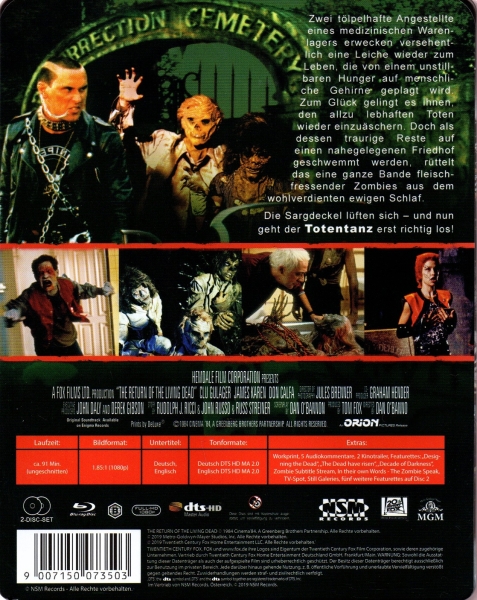 Zwei tölpelhafte Angestellte eines medizinischen Waren- lagers erwecken versehent- lich eine Leiche wieder zum Leben, die von einem unstill- baren Hunger auf menschli- che Gehirne geplagt wird. Zum Glück gelingt es ihnen, den allzu lebhaften Toten wieder einzuäschern. Doch als dessen traurige Reste auf einen nahegelegenen Friedhof geschwemmt werden, rüttelt das eine ganze Bande fleisch- fressender Zombies aus dem wohlverdienten ewigen Schlaf.