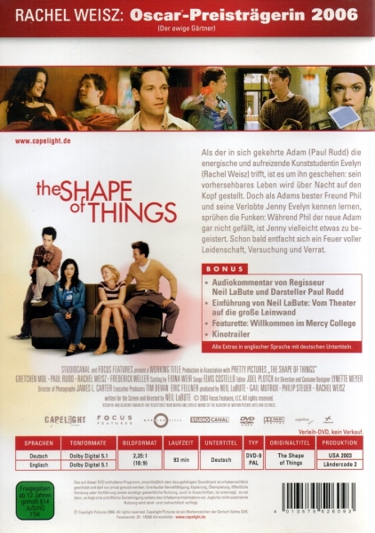 Als der in sich gekehrte Adam (Paul Rudd), die energische und aufreizende Kunststudentin Evelyn (Rachel Weisz) trifft, ist es um ihn geschehen: sein vorhersehbares Leben wird über Nacht auf den Kopf gestellt. Doch als Adams bester Freund Phil und seine Verlobte Jenny Evelyn kennen lernen, sprühen die Funken: Während Phil der neue Adam gar nicht gefällt, ist Jenny vielleicht etwas zu begeistert. Schon bald entfacht sich ein Feuer voller Leidenschaft, Versuchung und Verrat.