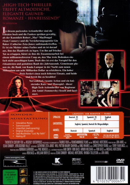 In diesem packenden Actionthriller sind die Einsätze hoch und die Funken sprühen gewaltig, als der Kunstdieb Robert „Mac“ MacDougal (Sean Connery) und die Versicherungsagentin Gin Baker (Catherine Zeta-Jones) aufeinandertreffen. Er ist ein Meister seines Faches und sie ist darauf aus, ihm das Handwerk zu legen. Um ihn auf frischer Tat zu ertappen, bietet sie ihm die Zusammenarbeit bei einem millionenschweren Coup an, den Mac trotz Bedenken einfach nicht ausschlagen kann. Doch dies ist erst das Vorspiel für den riskantesten und genialsten Raub des Jahrtausends. Gemeinsam planen sie, die Bank von Kuala Lumpur in der Nacht zum neuen Millennium um acht Milliarden Dollar zu erleichtern. Ein hoher Preis fordert einen noch höheren Einsatz, und beide sind bereit ihn zu bezahlen!