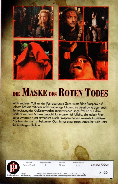 Während sein Volk an der Pest zugrunde Geht, feiert Prinz Prospero auf seinem Schloss mit dem Adel ausgiebige Orgien. Zu Belustigung aber auch Befriedigung der Gelüste werden immer wieder junge Frauen aus dem Dörfern vor dem Schloss geraubt. Eine davon ist Julietta, die jedoch Prosperos Avancen nicht erwiedert. Doch Prospero hat ein wesentlich größeres Problem, denn ein unbekannter Gast hinter einer roten Maske hat sich unter die Gäste geschlichen...