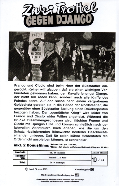 Franco und Ciccio sind beim Heer der Südstaatler eingerückt. Keiner will glauben, daß sie einen wichtigen Verbündeten gewonnen haben: den Kavalleriehengst Django, der nicht nur reden kann, sondern auch alle Kniffe des Feindes kennt. Auf der Suche nach einem vergrabenen Goldschatz geraten sie in die Hände der Nordstaatler, die gegenüber einer Südstaatler-Stellung einen Drückerposten bezogen haben. Der „gemütliche Krieg" wird leider von Franco und Ciccio wider Willen angeheizt. Während die Brücke zusammengeschossen wird, flüchten Franco und Ciccio mit Djangos Hilfe und können schließlich nach gefahrvollen Abenteuern noch erleben, wie die um den Schatz rivalisierenden Bösewichte beiderlei Geschlechts einander umlegen. Daß für solch kühne Heldentaten die Orden nicht ausbleiben können, ist sonnenklar.